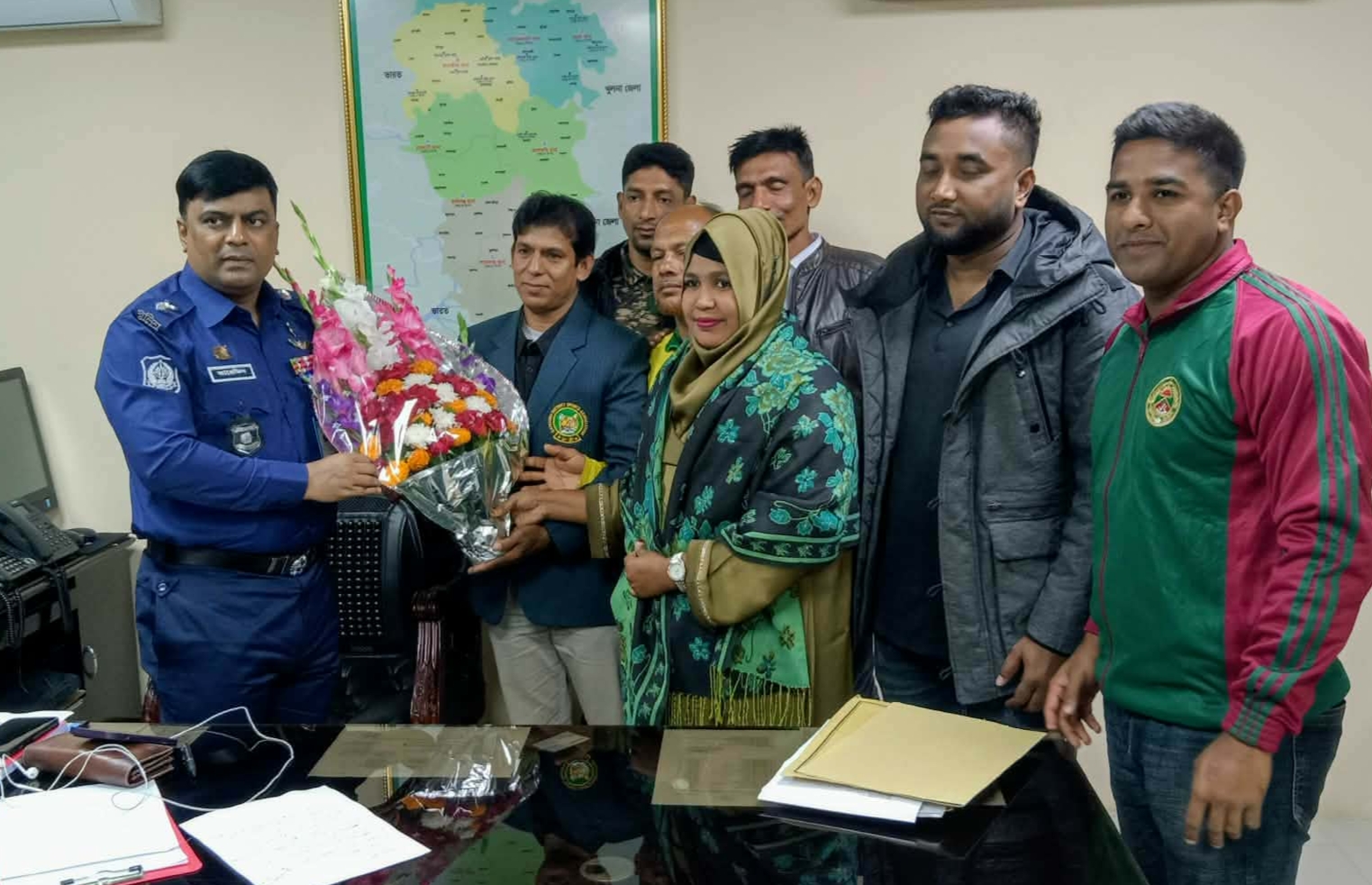 নিজস্ব প্রতিনিধি : সাতক্ষীরার নবাগত পুলিশ সুপার ও জেলা কাবাডি রেফারিজ অ্যাসোসিয়েশনের সভাপতি মো. আরেফিন জুয়েল ( বিপিএম) এর সাথে সৌজন্য সাক্ষাৎ ও ফুলেল শুভেচ্ছা প্রদান করেছেন জেলা কাবাডি রেফারিজ অ্যাসোসিয়েশন এর নেতৃবৃন্দ। ৭ই ডিসেম্বর রবিবার বিকাল ৫ টায় পুলিশ লাইন্সে পুলিশ সুপারের কার্যালয়ে উপস্থিত হয়ে এ সৌজন্য সাক্ষাৎ ও ফুলেল শুভেচ্ছা প্রদান করেন নেতৃবৃন্দরা। এসময় উপস্থিত ছিলেন, জেলা কাবাডি রেফারিজ অ্যাসোসিয়েশনের সহ-সভাপতি রফিকুল ইসলাম খান, আবু মুছা গাজী , সাধারণ সম্পাদক আব্দুল গফফার, যুগ্ম সাধারণ সম্পাদক আবুল কালাম আজাদ, কোষাধ্যক্ষ মো. রুহুল আমিন, দপ্তর সম্পাদক শেখ আহম্মদ হোসেন টুটুল, কার্যকরী সদস্য দোলা পারভীন, ইউনুস আলী, আল আমিন, আরিফুর রহমান মন্টু, তারেক মাহমুদ। সৌজন্য সাক্ষাৎ কালে নবাগত পুলিশ সুপার সংগঠনের বিভিন্ন বিষয়ে খোজ খবর নেন এবং গুরুত্বপূর্ণ দিকনির্দেশনাসহ সংগঠনকে এগিয়ে যাওয়ার লক্ষে সার্বিক সহযোগিতার আশ্বাস প্রদান করেন।