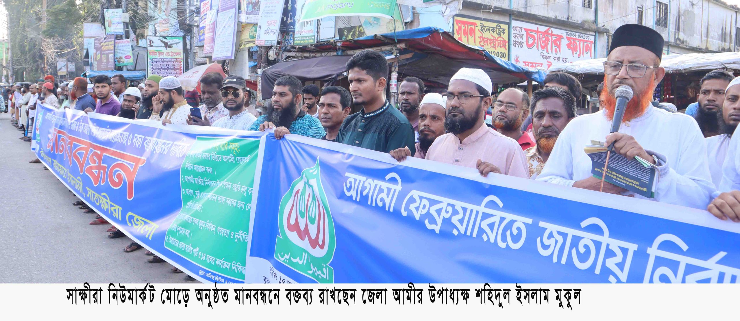 পিআর পদ্ধতিকে জুলাই সনদে অন্তর্ভুক্ত করে গণভোটের দাবিসহ ৫ দফা দাবিতে বুধবার ১৫ অক্টোবর সাতক্ষীরা খুলনারোড মোড় থেকে ইটাগাছা হাটের মোড় পর্যন্ত ২ কিলোমিটার সড়কজুড়ে অনুষ্ঠিত মানববন্ধন কর্মসূচিতে যোগ দিয়ে প্রধান অতিথির বক্তব্যে তিনি এসব কথা বলেন।