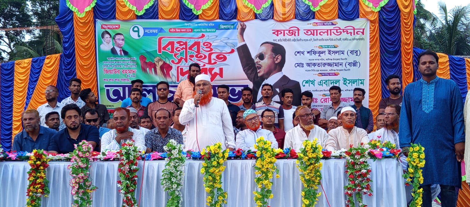 শুক্রবার (৭ নভেম্বর) বিকেলে উপজেলার আমতলা মোড়ে বিপ্লব ও সংহতি দিবসে উপজেলা বিএনপির সাবেক আহ্বায়ক ও জেলা বিএনপির সদস্য শেখ এবাদুল ইসলামের সভাপতিত্বে এবং কুশুলিয়া ইউনিয়ন বিএনপির সভাপতি মোঃ হাসানুর রহমান ও উপজেলা কৃষকদলের আহবায়ক রোকনুজ্জামান এর সঞ্চালনায় অনুষ্ঠানে প্রধান অতিথির বক্তব্য রাখেন বিএনপির জাতীয় নির্বাহী কমিটির সদস্য ও সাতক্ষীরা-৩ আসনের মনোনীত প্রার্থী আলহাজ্ব কাজী মোঃ আলাউদ্দিন। বিশেষ অতিথির বক্তব্য রাখেন উপজেলা বিএনপির সাবেক সদস্য সচিব ডাঃ শেখ শফিকুল ইসলাম বাবু, উপজেলা বিএনপির সাবেক সিনিয়র যুগ্ম আহ্বায়ক আকতারুজ্জামান বাপ্পী, উপজেলা বিএনপির সাবেক তথ্য বিষয়ক সম্পাদক সাংবাদিক এম হাফিজুর রহমান শিমুল, দক্ষিণ শ্রীপুর বিএনপির সভাপতি জুলফিক্কার আলী সাপুঁই, সাধারণ সম্পাদক নুরুজ্জামান পাড়, কুশুলিয়া বিএনপির সভাপতি হাসানুর রহমান, সিনিঃ সহ সভাপতি শেখ হাবিবুল্লাহ, মথুরেশপুর ইউনিয়ন বিএনপির সভাপতি নাজমুল ইসলাম বাবু, সাধারণ সম্পাদক সৈয়দ হেমায়েত বাবু, সহ সভাপতি সৈয়দ হাসানত আলী, সাংগঠনিক সম্পাদক বুলু, কৃষ্ণনগর ইউনিয়ন বিএনপির সভাপতি আল- মাহমুদ ছট্টু, সাধারণ সম্পাদক আফজাল গাজী, সাংগঠনিক সম্পাদক মাহমুদ মোস্তফা, মৌতলা ইউনিয়ন বিএনপির সভাপতি শেখ আলমগীর হোসেন, সাংগঠনিক সম্পাদক আসাদুজ্জামান আকুল, দক্ষিণ শ্রীপুর ইউনিয়ন বিএনপির সাধারণ সম্পাদক নুরুজ্জামান পাড়, সাংগঠনিক সম্পাদক হাফিজুর রহমান হুকুম, রতনপুর ইউনিয়ন বিএনপির সিনিঃ সহ সভাপতি রফিকুল ইসলাম বাবু, সাধারণ সম্পাদক ফজলুর রহমান আকাশ, ধলবাড়িয়া বিএনপির সাবেক আহবায়ক রেজাউল ইসলাম, চাম্পাফুল ইউনিয়ন বিএনপির সভাপতি আব্দুল লতিফ মোড়ল, সাবেক সদস্য সচিব মেম্বর আবুল কালাম গাজী, তারালী ইউনিয়ন সিনিঃ সহ সভাপতি এনামুল হক এনাম, সেক্রেটারী গনিয়ার রহমান গনি, বিষ্ণুপুর বিএনপির সিনিঃ সহ সভাপতি মেহেদী হাসান বাবু, সাবেক সাধারণ সম্পাদক মেম্বর কামরুজ্জামান হাবিব, যুগ্ম সম্পাদক আজিজুর রহমান খান, নলতা ইউনিয়ন বিএনপির সিনি সহ সভাপতি আশরাফুল ইসলাম ওসমান, উপজেলা যুবদলের যুবদলের সিনিঃ যুগ্ম আহবায়ক প্রভাসক সাইফুল ইসলাম, কালিগঞ্জ উপজেলা ছাত্রদলের সাবেক সাধারণ সম্পাদক এসএম রেদোয়ান ফেরদৌস রনি, উপজেরা শ্রমিকদলের সদস্য সচিব শোকর আলী, উপজেলা তাঁতীদলের সদস্য সচিব ফারুক হোসেন, জাসাস এর সভাপতি মুরশীদ আলী গাজী, কৃষকদলের উপজেলা সদস্য সচিব আরিফুর রহমান ছোটন, সরকারী কলেজ ছাত্রদলের সভাপতি তাজকিন মেহেদী তাজ, সহ সভাপতি তৌহিদ, সচধারণ সম্পাদক ওমর ফারুক প্রমুখ। এছাড়া উপস্থিত ছিলেন উপজেলা ও ইউনিয়ন বিএনপি এবং অঙ্গ সহযোগী সংগঠনের বিভিন্ন সংগঠনের নেতৃবৃন্দসহ হাজার হাজার কর্মী সমর্থকবৃন্দ। আলোচ