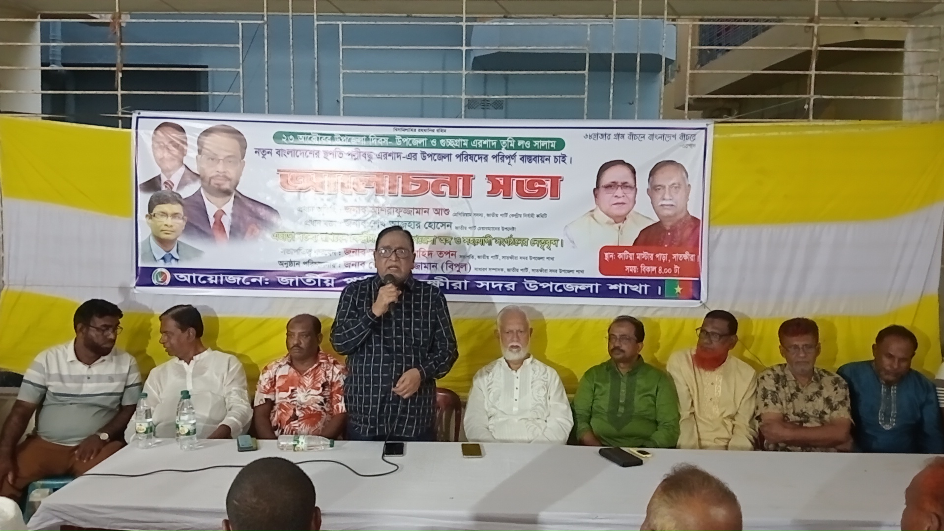 বৃহস্পতিবার (২৩ অক্টোবর) বিকেলে সাতক্ষীরা শহরের কাটিয়ায় জেলা জাতীয় পার্টির কার্যালয়ে উপজেলা দিবস উপলক্ষে আয়োজিত “উপজেলা পরিষদের পরিপূর্ণ বাস্তবায়ন” শীর্ষক আলোচনা সভায় প্রধান অতিথির বক্তব্যে তিনি এ কথা বলেন।