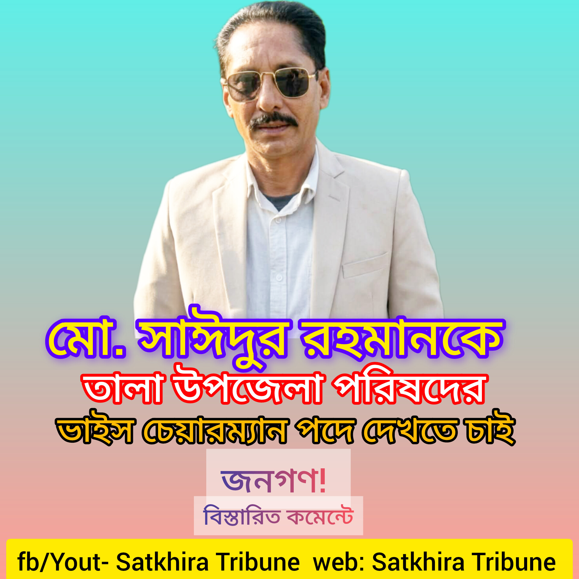 মোঃ আকবর হোসেন তালা: সাতক্ষীরার তালা উপজেলায় আসন্ন উপজেলা পরিষদ নির্বাচনে ভাইস চেয়ারম্যান পদে সম্ভাব্য প্রার্থী হিসেবে সাইদুর রহমান সাইদকে নিয়ে দলমত নির্বিশেষে জোরালো দাবি উঠেছে। বিভিন্ন রাজনৈতিক দল, সামাজিক সংগঠন এবং সাধারণ মানুষের মধ্যে তাকে ঘিরে ব্যাপক সমর্থন লক্ষ্য করা যাচ্ছে।স্থানীয় পর্যায়ে তরুণ ও উদ্যমী নেতৃত্ব হিসেবে তার পরিচিতি রয়েছে সর্বদলীয় মহলে , তালা উপজেলার টেকসই উন্নয়ন এবং সাধারণ মানুষের ন্যায্য অধিকার আদায়ে সাইদুর রহমান সাইদ-এর মতো নেতৃত্ব প্রয়োজন।