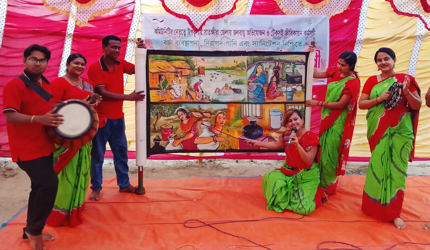 আনন্দ এর ট্রেনিং অফিসার মি: রুমন বড়ুয়াসহ স্থানীয় জনপ্রতিনিধি, গণ্যমান্য ব্যাক্তি, সাধারণ জনগণ এবং উন্নয়ন সংস্থা আনন্দ এর কর্মকর্তারা উপস্থিত ছিলেন। অনুষ্ঠানে সাতক্ষীরা জেলার উপকূলীয় অঞ্চলে জলবায়ু পরিবর্তনের প্রতিকূল প্রভাব মোকাবিলা ও টেকসই জীবিকায়ন নিশ্চিত করতে জনগণকে সচেতন করার কার্যক্রম চলছে। এর অংশ হিসেবে বর্জ্য ব্যবস্থাপনা, নিরাপদ পানি এবং স্যানিটেশন নিশ্চিতে জনসচেতনতামূলক পটগান ও পটচিত্র প্রদর্শনী অনুষ্ঠিত হয়েছে। অনুষ্ঠানের মূল আকর্ষণ ছিল বর্জ্য ব্যবস্থাপনা, নিরাপদ পানি এবং স্যানিটেশন নিশ্চিতে জনসচেতনতামূলক পটগান ও পটচিত্র প্রদর্শনী। ছবি, নাটক ও পট গানের মাধ্যমে নিরাপদ পানি, অনিরাপদ পানি খাওয়ার ক্ষতিকারক দিক, খোলা স্থানে মলত্যাগের ক্ষতিকারক দিক, ব্যক্তিগত ও পারিবারিক পরিষ্কার-পরিচ্ছন্নতা বিষয়ে শিল্পীরা অত্যন্ত দক্ষতার সাথে আনন্দ বিনোদনের মাধ্যমে এই পটগান ও পটচিত্র প্রদর্শন করে মানুষের ভিতরে ব্যাপক সচেতনতা তৈরি করবে বলে আশা করা যাচ্ছে। এই পটগান ও পটচিত্র প্রদর্শনী সচেতনতামূলক বার্তাগুলোকে আরো সহজে মানুষের কাছে পৌছে দেয়। সাংস্কৃতিক পরিবেশনার মাধ্যমে এই সচেতনতামূলক কার্যক্রমটি স্থানীয়দের মাঝে ব্যাপক সাড়া ফেলেছে। আয়োজকদের মতে , এই উদ্যোগ একটি সুস্থ ও স্থিতিস্থাপক সমাজ গঠনে গুরুত্বপূর্ণ ভূমিকা রাখবে।