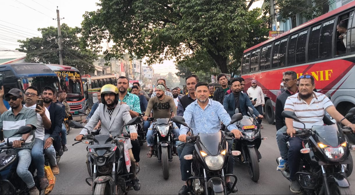 শেখ হাসিনার ফাঁসির দাবিতে জেলা বিএনপির লকডাউন বিরোধী মোটরসাইকেল মহড়া