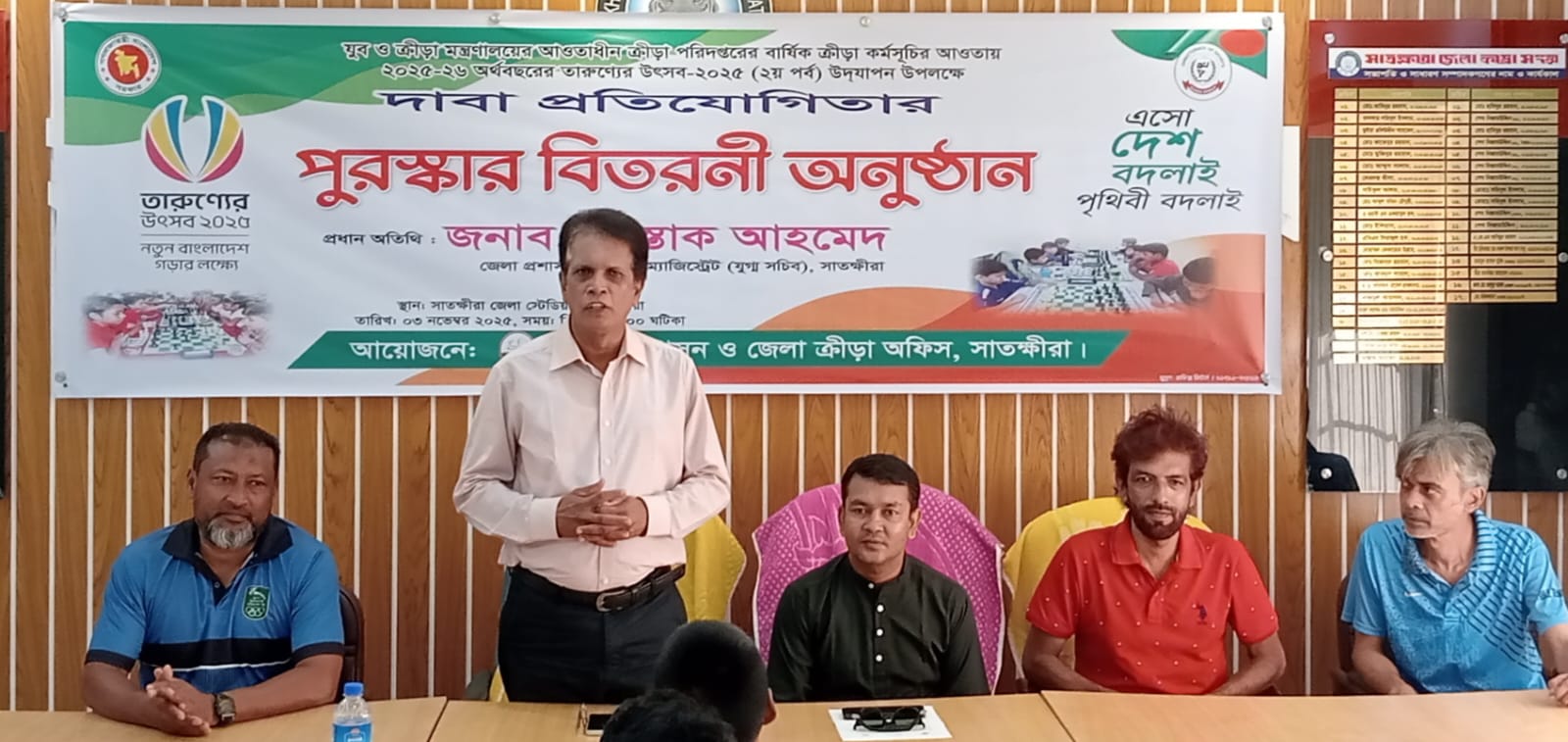 সাতক্ষীরা জেলা ক্রীড়া অফিসার মো. কামরুজ্জামান এর সভাপতিত্বে প্রধান অতিথি হিসেবে উপস্থিত থেকে দাবা প্রতিযোগিতার উদ্বোধন করেন সাবেক ফিফা রেফারি ও জেলা ক্রীড়া সংস্থা সদস্য তৈয়ব হাসান শামসুজ্জামান বাবু। এসময় উপস্থিত ছিলেন, জেলা ক্রীড়া সংস্থার সাবেক যুগ্ম সাধারণ সম্পাদক মীর তাজুল ইসলাম রিপন, টেবিল টেনিস কোচ আতিকুজ্জামান খান চৌধুরী সুমন প্রমুখ। উল্লেখ্য দাবা প্রতিযোগিতায় জেলার ৭ টি উপজেলার ৭ টি দল অংশ নেয়।